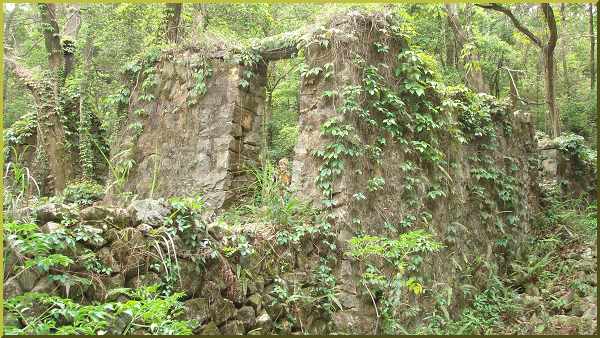 was probably the kitchen behind this once magnificent stone home (it had